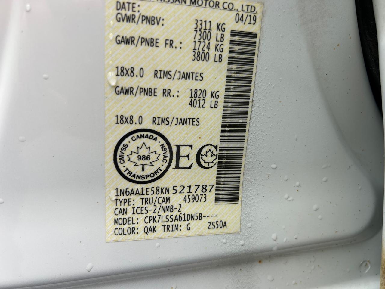 - VIN: 1N6AA1E58KN521787
